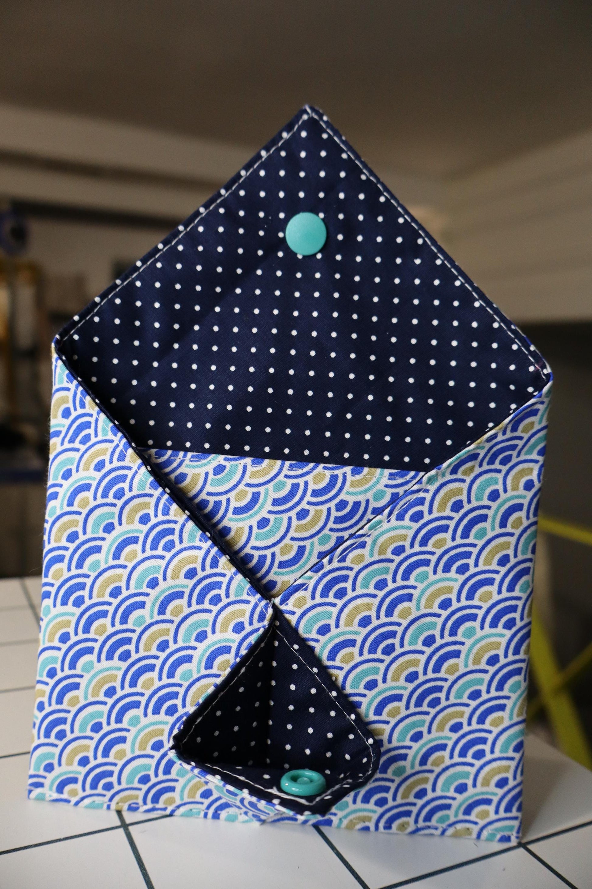 Handmade cotton passport holder, Japanese origami mini wallet.