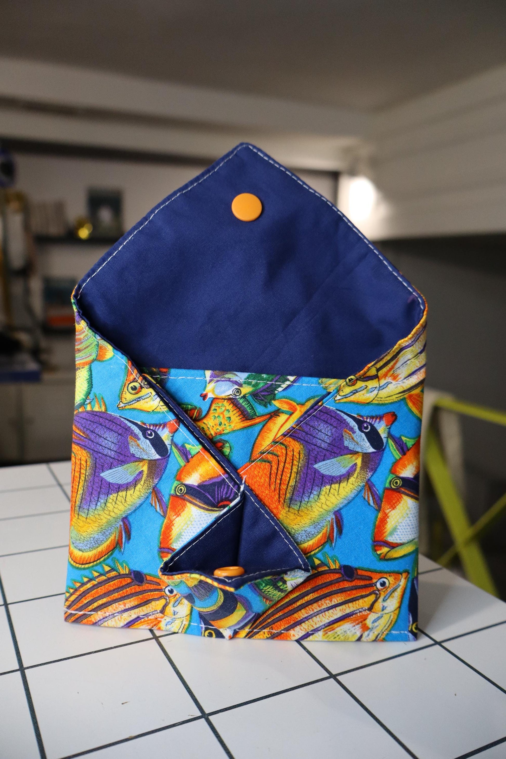 Handmade cotton passport holder, Japanese origami mini wallet.